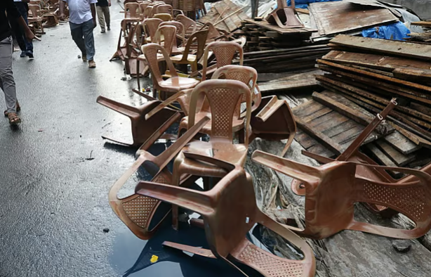 বিকেল সাড়ে চারটার দেখা যায় কার্যালয়ের ফটক বন্ধ। সামনে পুলিশ অবস্থান করছে। সমাবেশের জন্য আনা চেয়ার টেবিল সরিয়ে নিচ্ছে ডেকোরেশনের লোকজন।