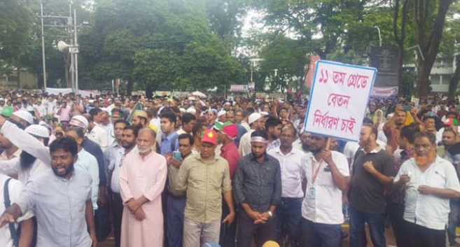 এর আগে, মনির হোসেনের সভাপতিত্বে সকালে মহাসমাবেশে সংহতি জানিয়ে বক্তব্য দেন গণসংহতি আন্দোলনের প্রধান সমন্বয়কারী জোনায়েদ সাকি। তিনি বলেন, শিক্ষকতা একটা পেশা বটে। কিন্তু এটা পেশার চাইতে ঊর্ধ্বে। শিক্ষাব্যবস্থায় শিক্ষকরা অন্যতম প্রধান ভূমিকা পালন করেন। সমাজে যেন শিক্ষকদের মর্যাদা বৃদ্ধির জন্য স্বতন্ত্র বেতন স্কেল করতে হবে।