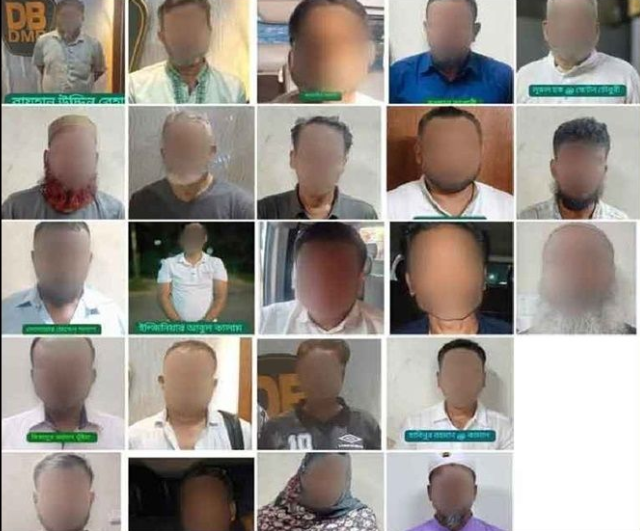 ডিবির মিরপুর বিভাগ তিনজন, রমনা বিভাগ তিনজন, সাইবার সিকিউরিটি বিভাগ দুজন, মতিঝিল বিভাগ চারজন, ওয়ারী বিভাগ পাঁচজন, উত্তরা বিভাগ দুজন, তেজগাঁও বিভাগ দুজন, লালবাগ বিভাগ তিনজন ও গুলশান বিভাগ একজনকে গ্রেপ্তার করেছে।