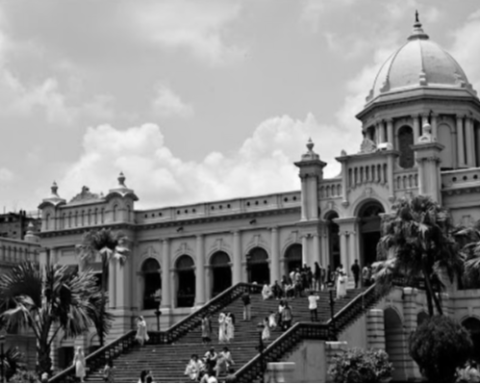 ঢাকার ইতিহাসের রাজকীয় নিদর্শন সরোজ কান্তি দেওয়াঞ্জী , ভূমিকা বুড়িগঙ্গার শান্ত জলের তীরে দাঁড়িয়ে আছে এক গোলাপি স্বপ্ন—যে প্রাসাদ একসময় ঢাকার রাজকীয়তার প্রতীক ছিল।তার নাম আহসান মঞ্জিল।আজ এটি ইতিহাস, স্থাপত্য আর গৌরবের