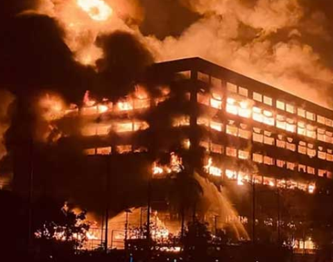 ৮ তলার ছাদ ধসে পড়েছে, আগুন নেভাতে যুক্ত হয়েছে রোবট